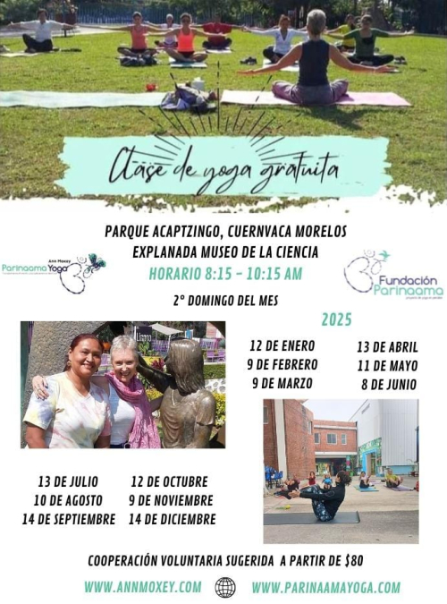 El Proyecto de la Prisión de Parinaama fue iniciado en 2003 por Ann Moxey – Instructora Certificada de Anusara con una formación en Vini-Yoga y entrenamientos con profesores del gran maestro Iyengar. En 2011, Ann inició un curso de formación de profesores de yoga para los reclusos en la prisión de hombres, que continúa hasta el día de hoy y fue asistido inicialmente por dos participantes de yoga de la prisión de mujeres hasta que salieron libres. Cinco de estos reclusos trabajan actualmente como profesores de yoga, algunos de ellos en centros de detención / rehabilitación y prevención de adicciones para de menores. Nos apoyan en el Parque de Acapatzingo en Cuernavaca, ofreciendo clases y coordinando a otros maestros voluntarios.